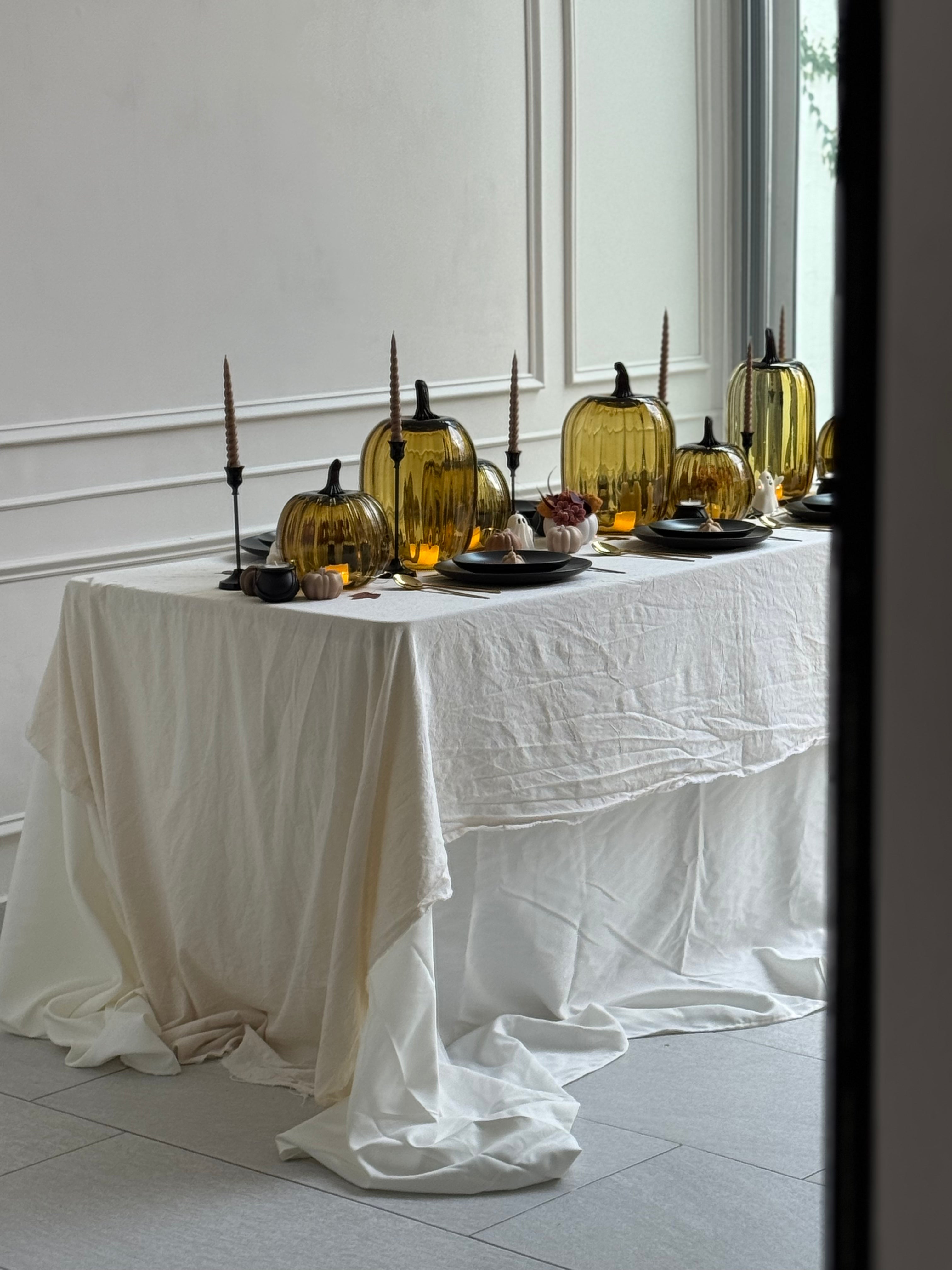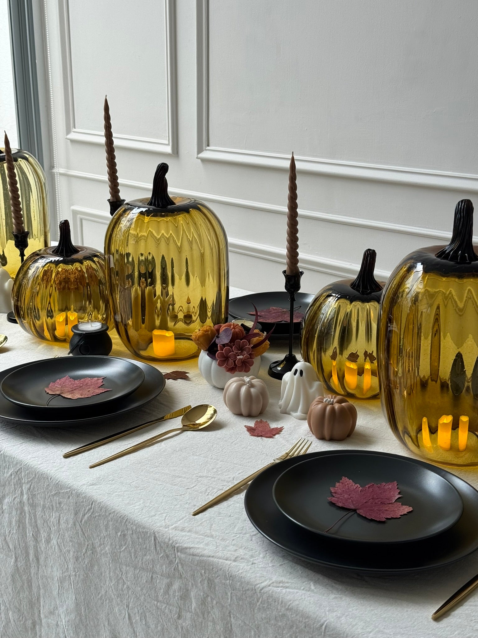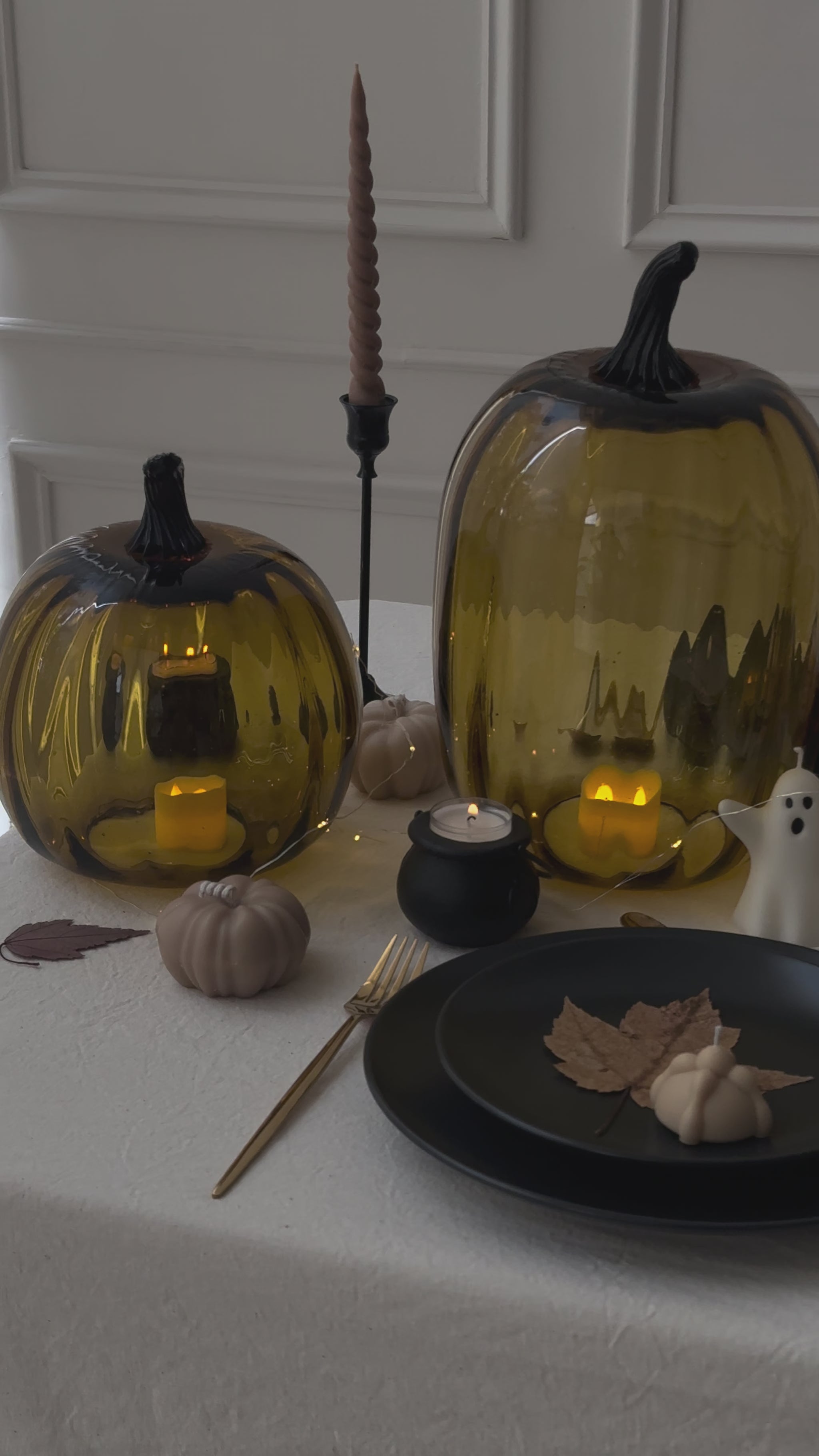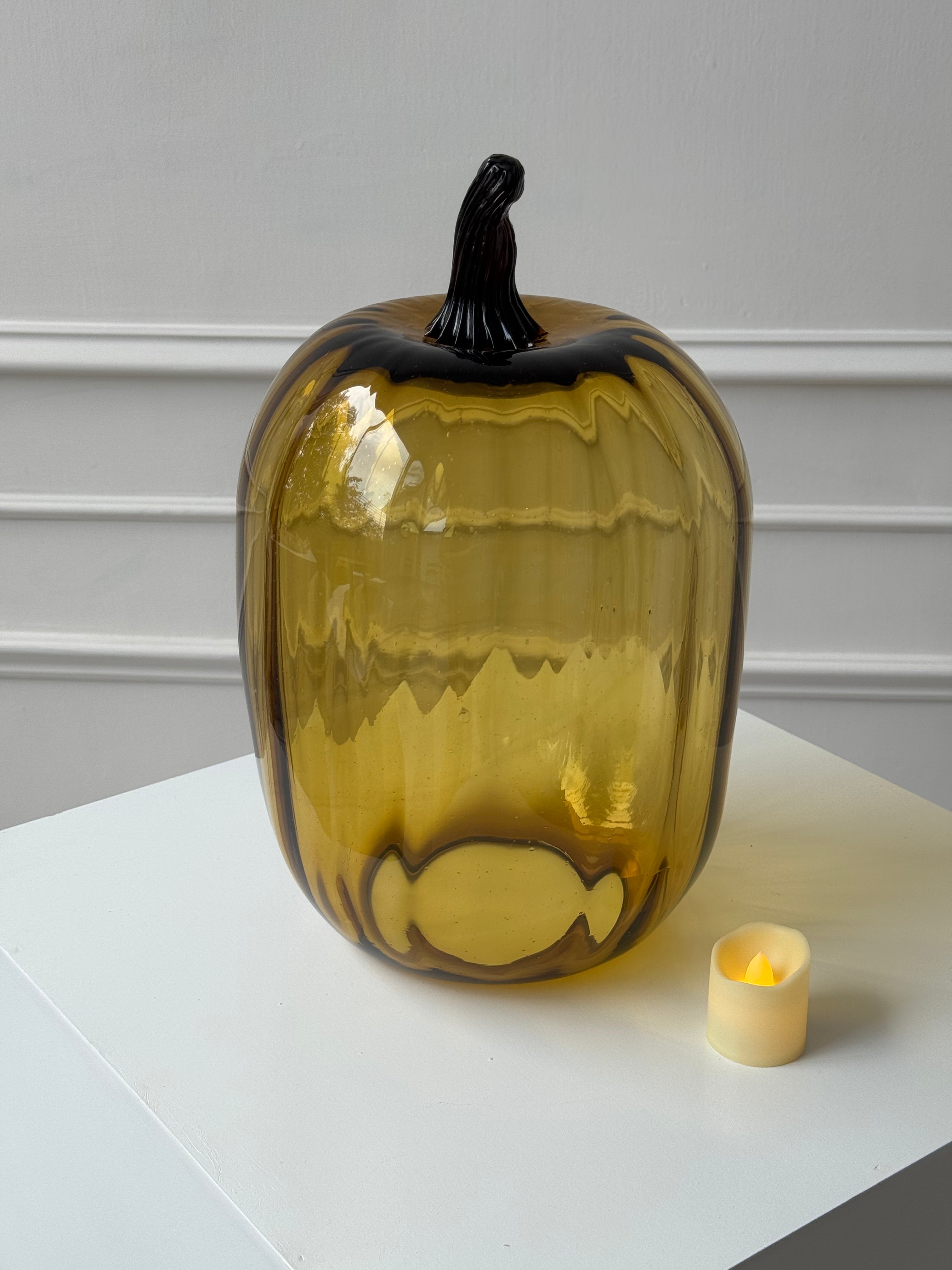 Calabazas de vidrio soplado hechas a mano en Guadalajara por artesanos de la región. Encuéntralas disponibles en tonos ámbar y humo, recuerda que al ser un producto 100% artesanal, puede presentar variaciones en su diseño y tonalidades.