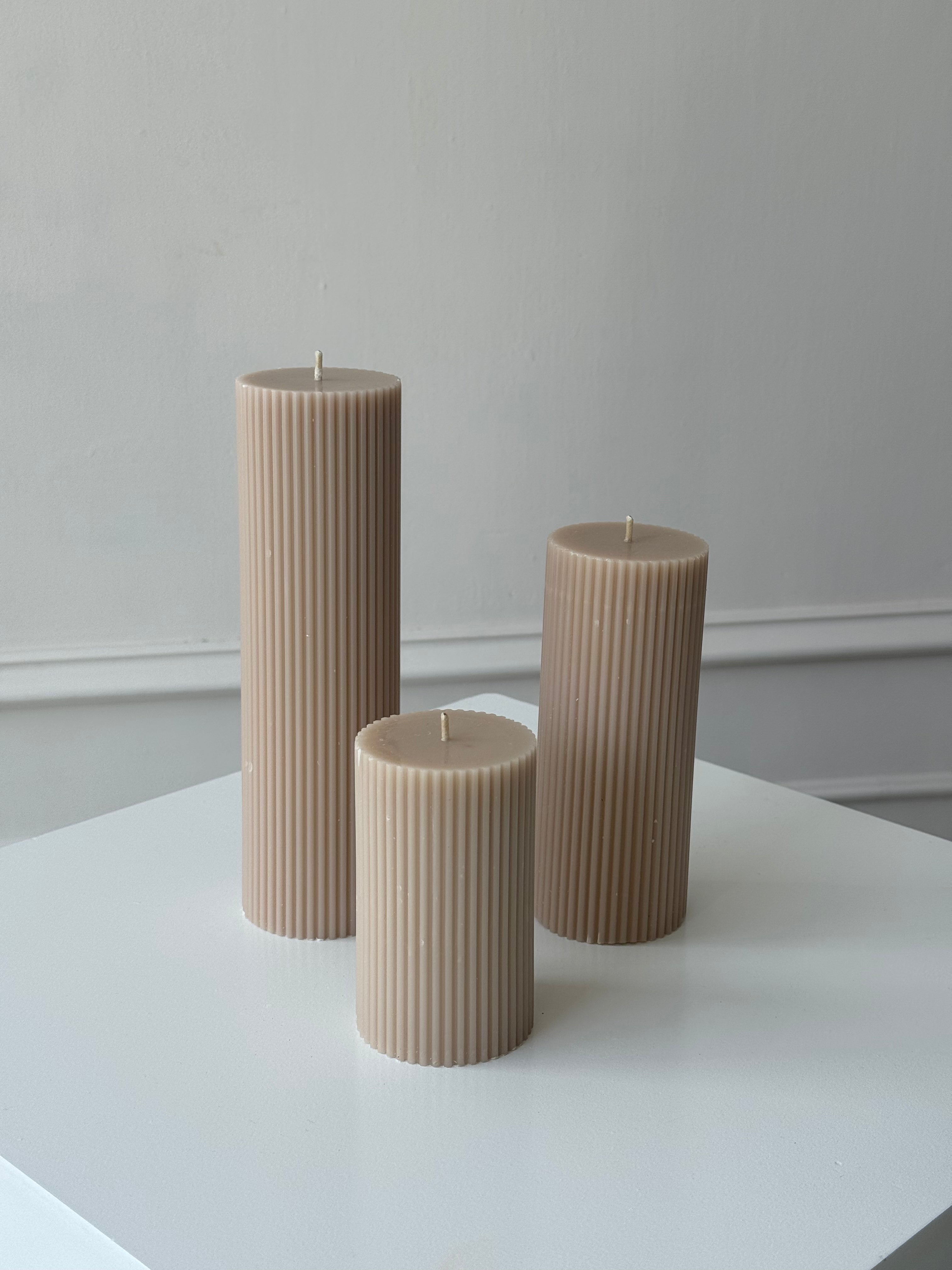 Set de 3 cirios acanalados color nude a base de cera de soya.