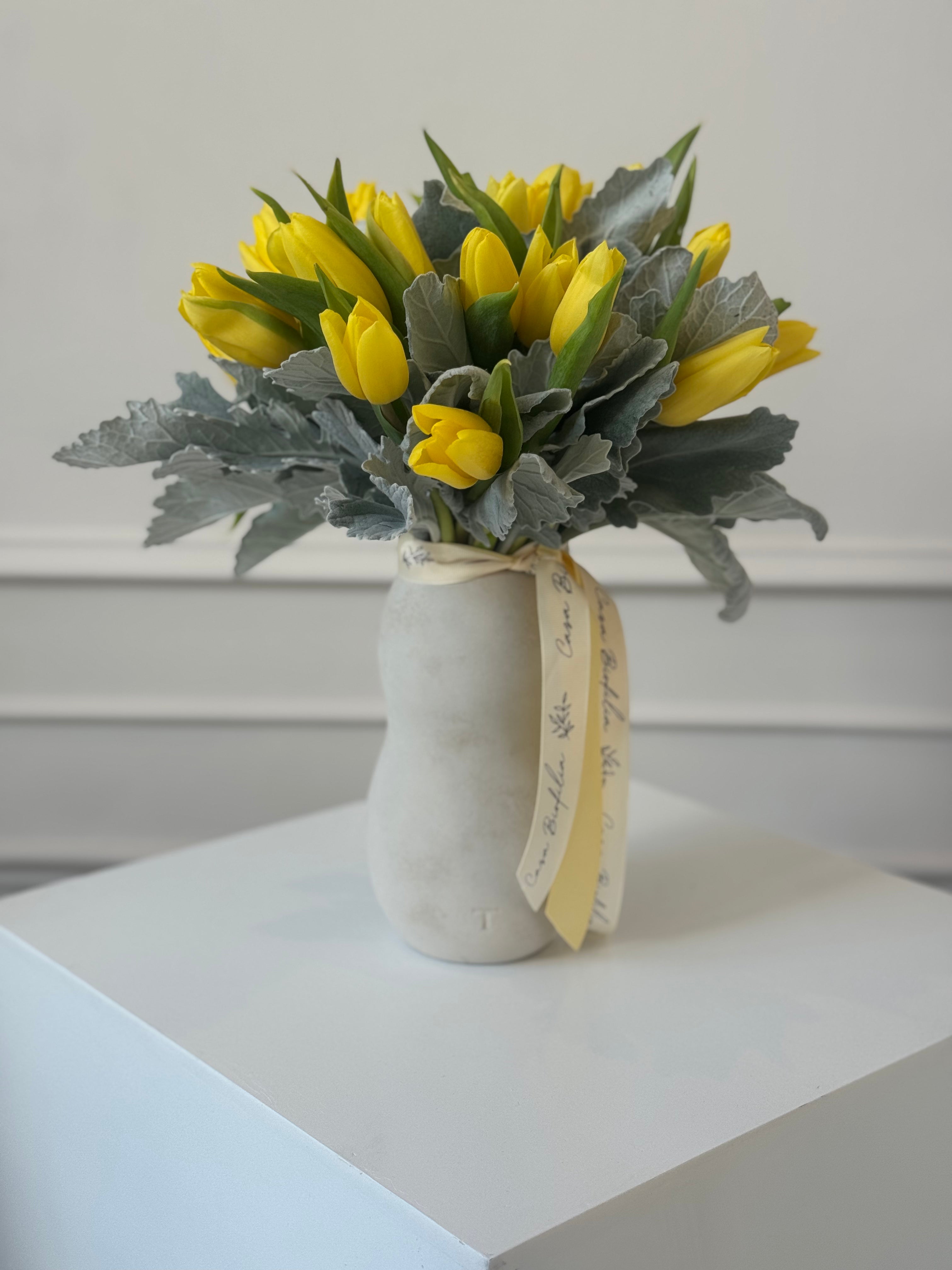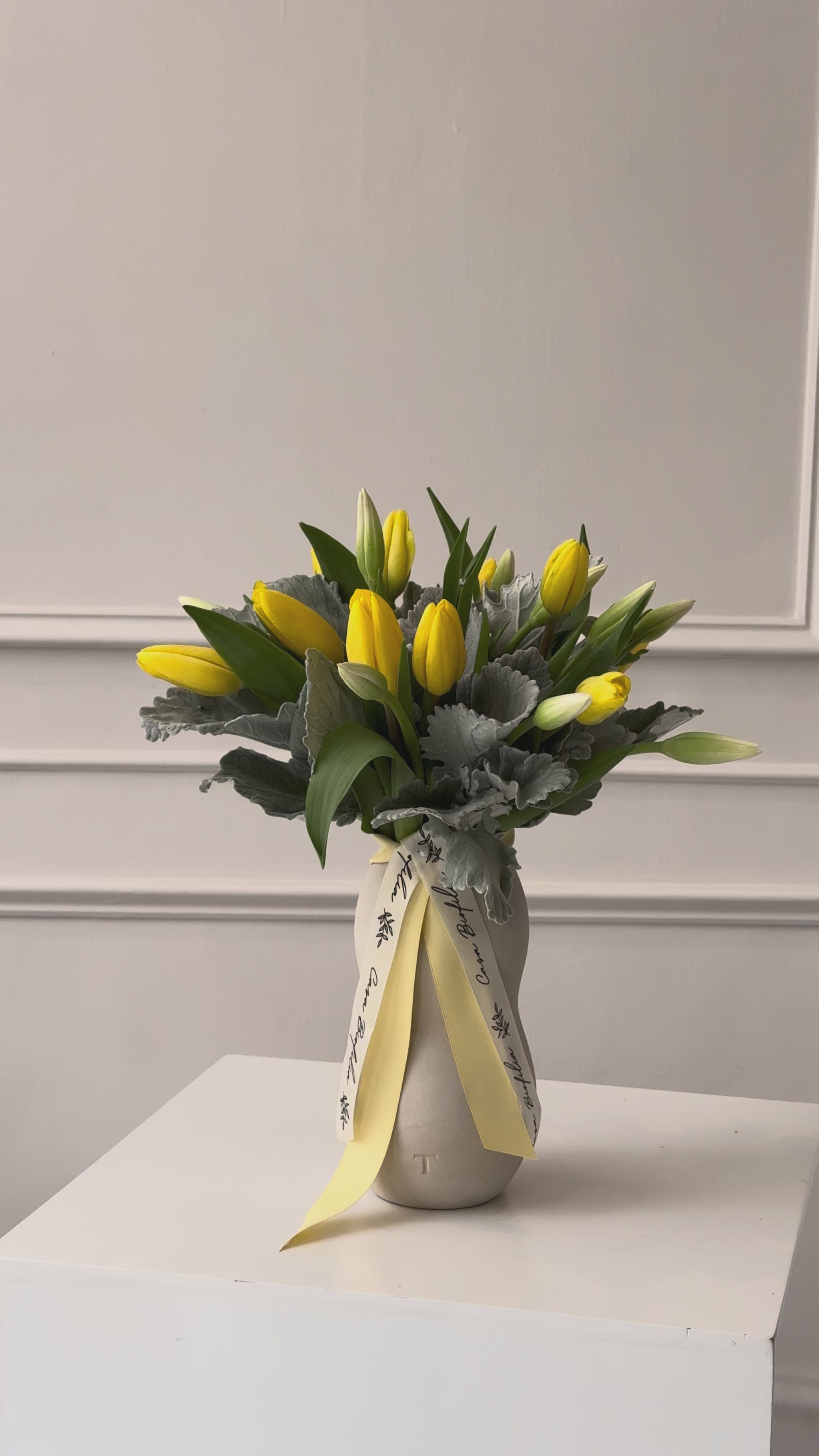 Este jarrón de tulipanes es perfecto para regalar en una ocasión especial.