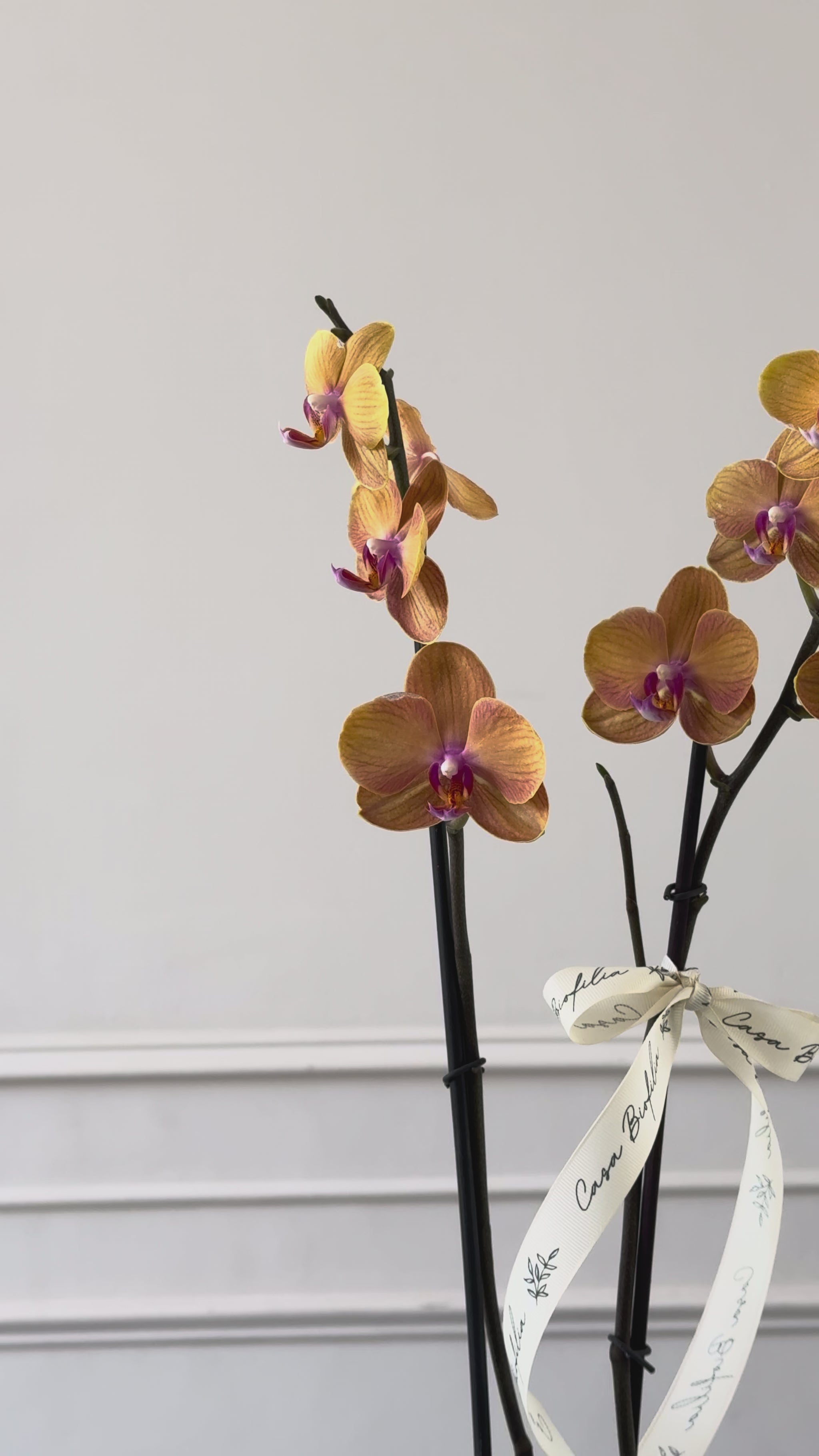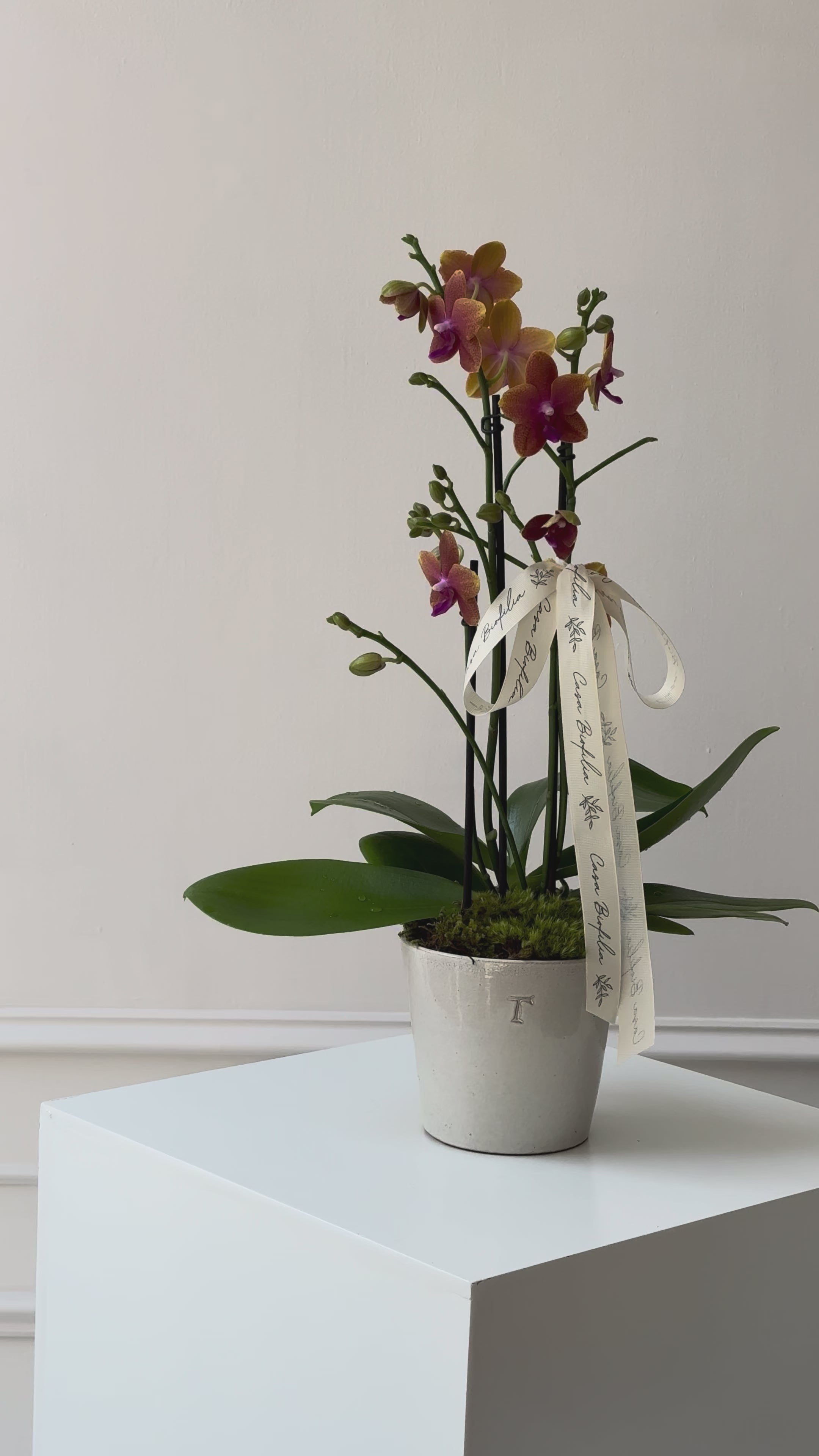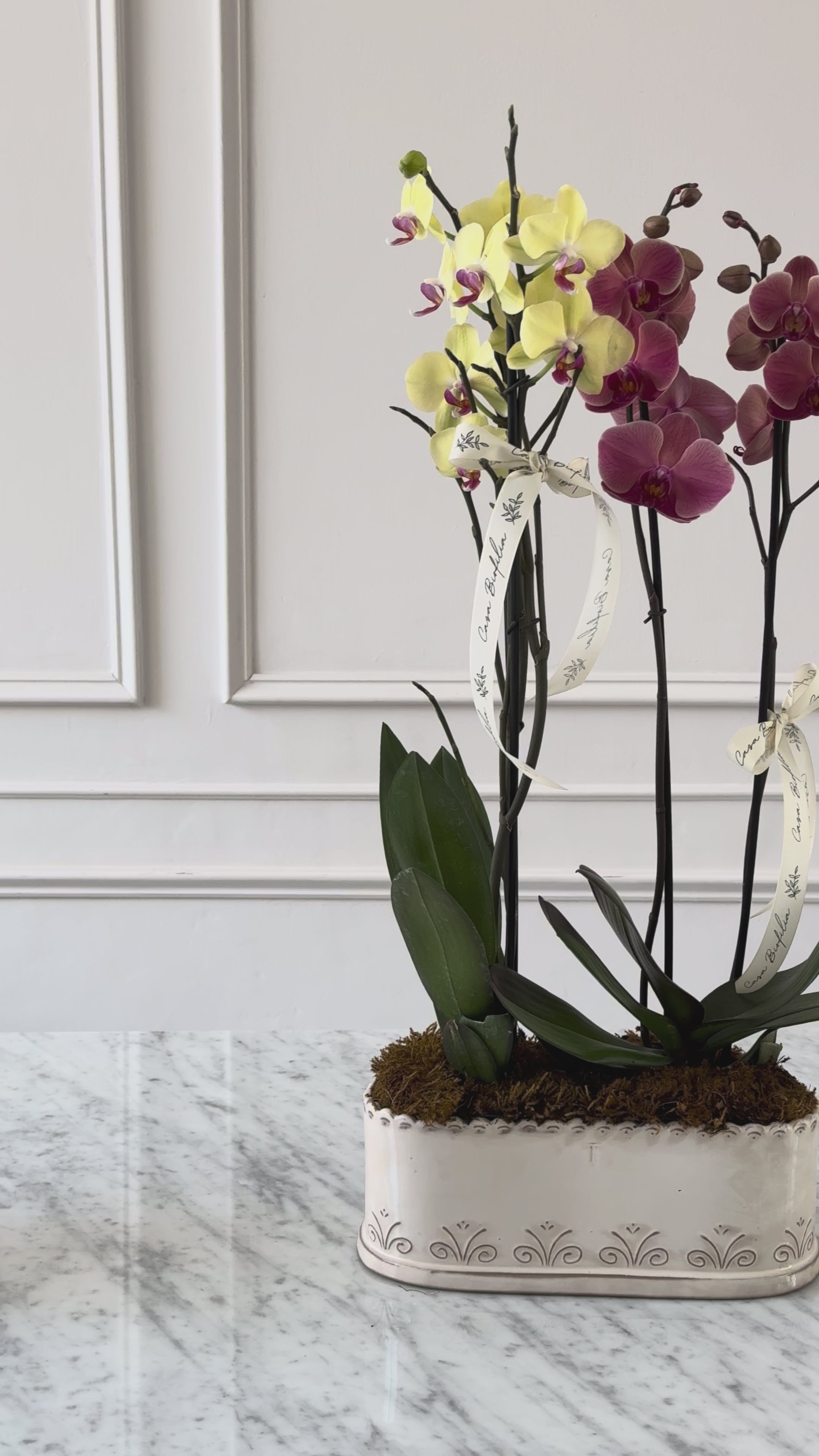 Este arreglo con orquídeas es una opción encantadora para ofrecer un detalle duradero que siga luciendo especial día tras día.