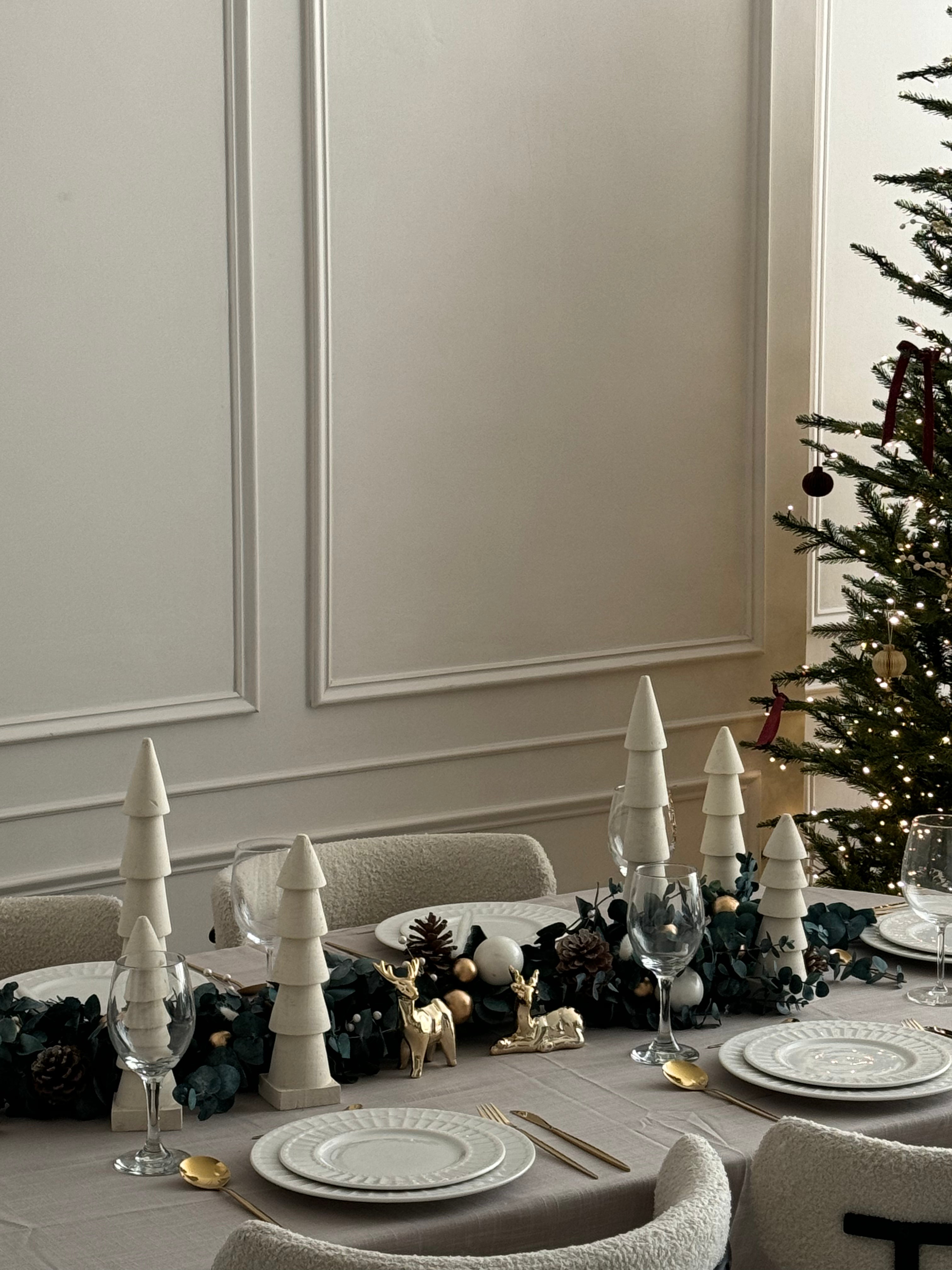 Inspirados en la temporada navideña, estos pinos de madera en tonos beige y natural aportan un toque artesanal y armonioso a cualquier espacio.