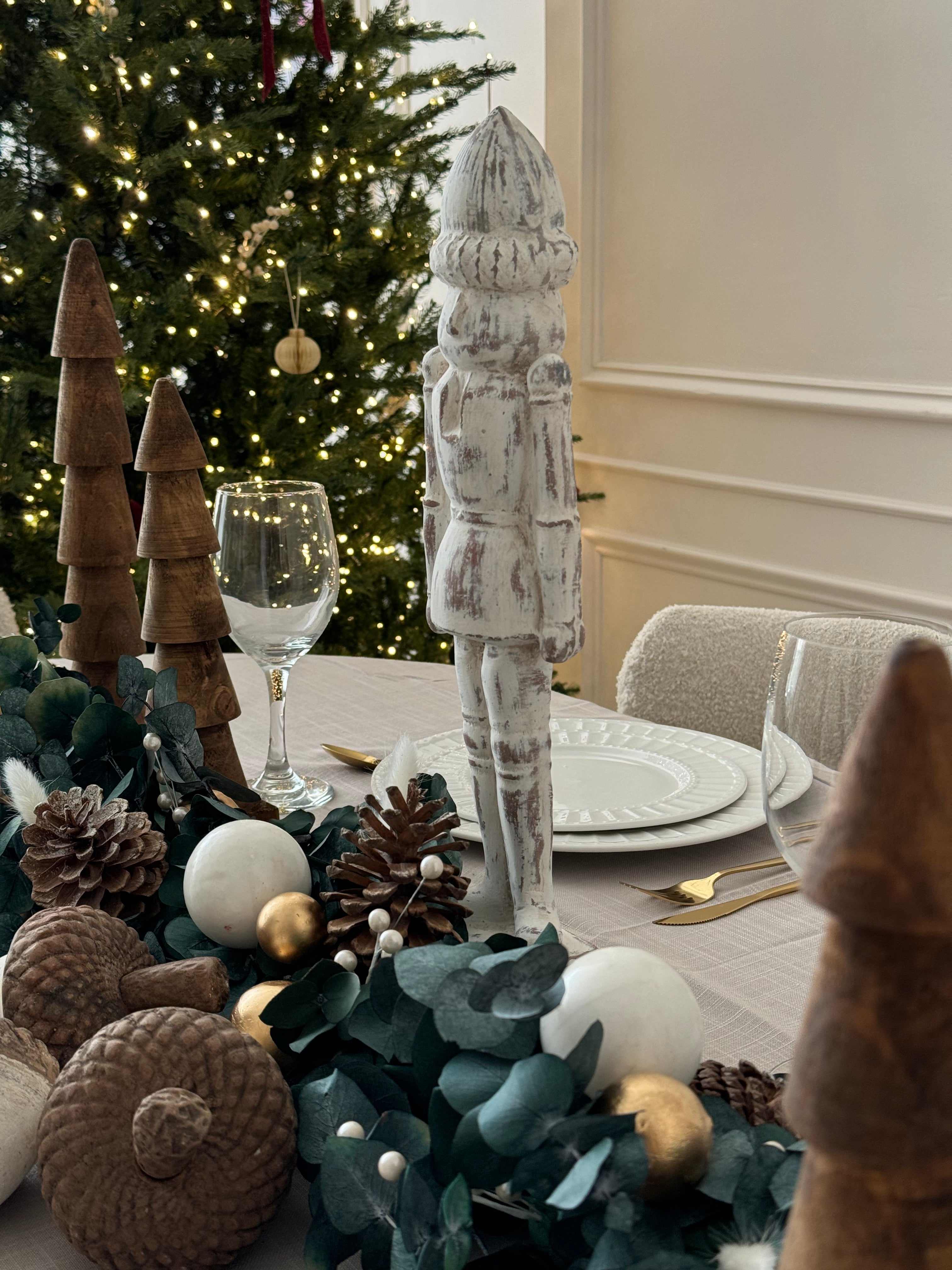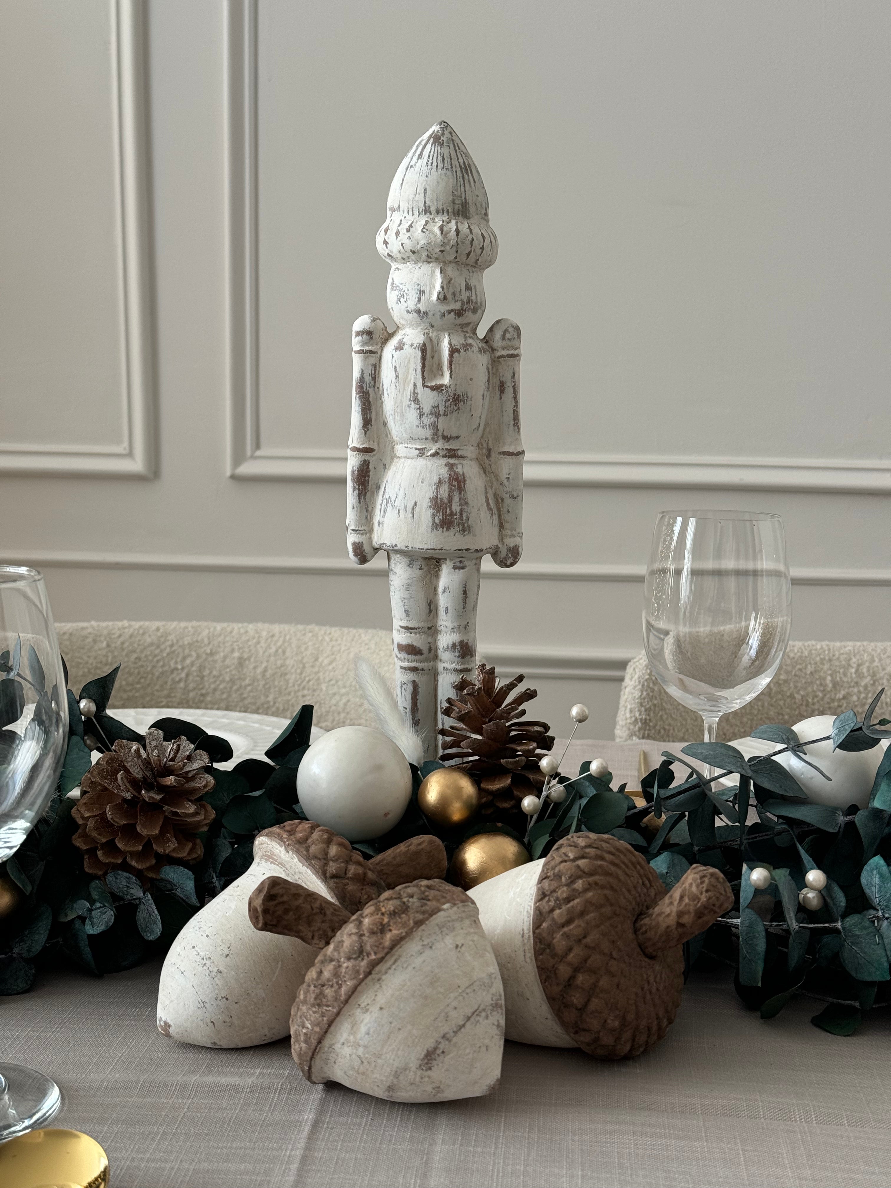 Añade un toque artesanal y cálido a tu decoración navideña con este cascanueces hecho a mano en barro, en un tono beige neutro que combina fácilmente con cualquier estilo.