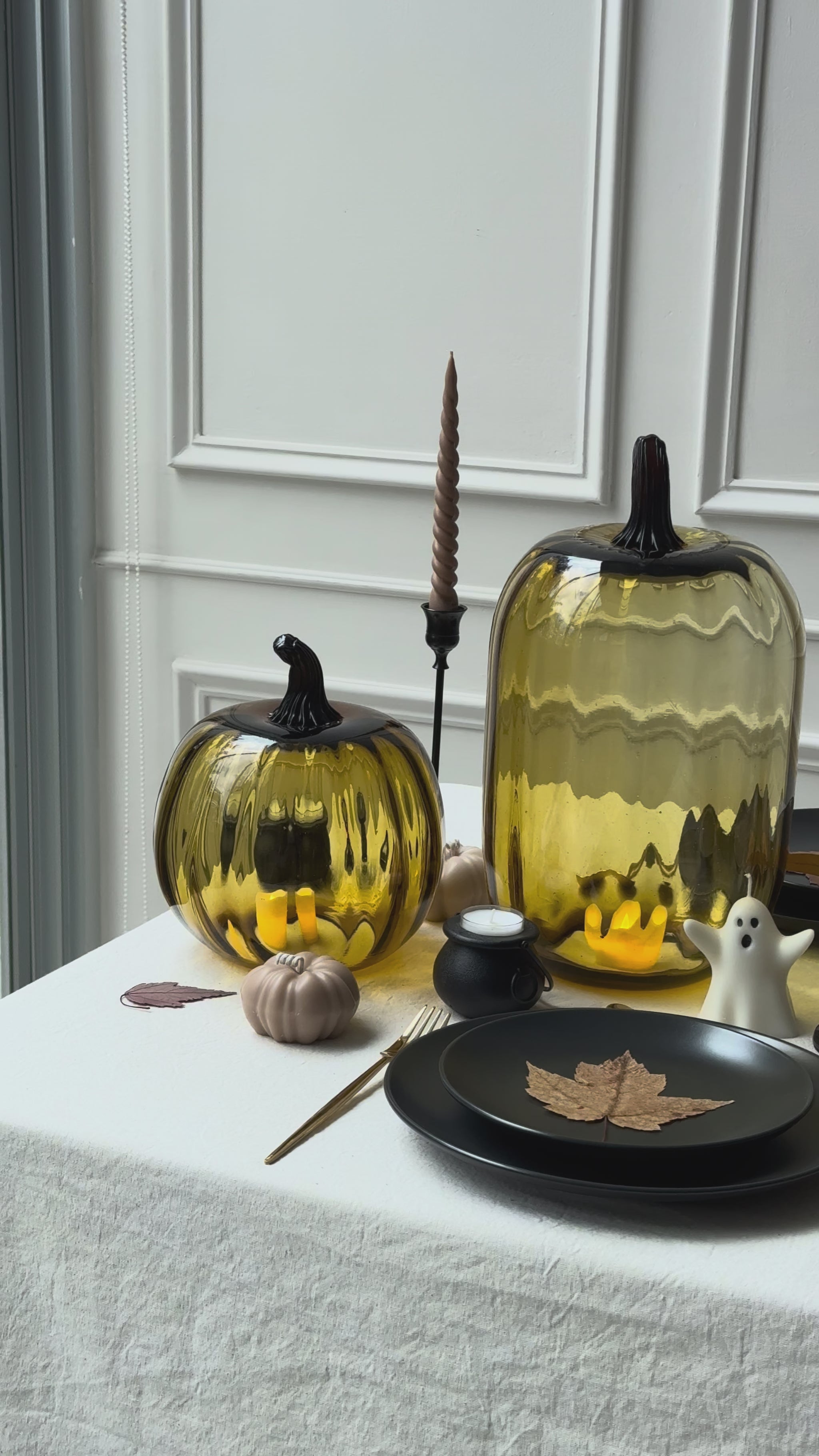 Este set incluye tres candelabros negros en diferentes alturas 7x35cm, 38cm y 40cm (medida ya considerando la vela), acompañados de velas en espiral color mocha mousse y un delicioso aroma a chocolate. Una combinación ligera pero elegante que aporta un aire sofisticado y estacional a cualquier espacio.