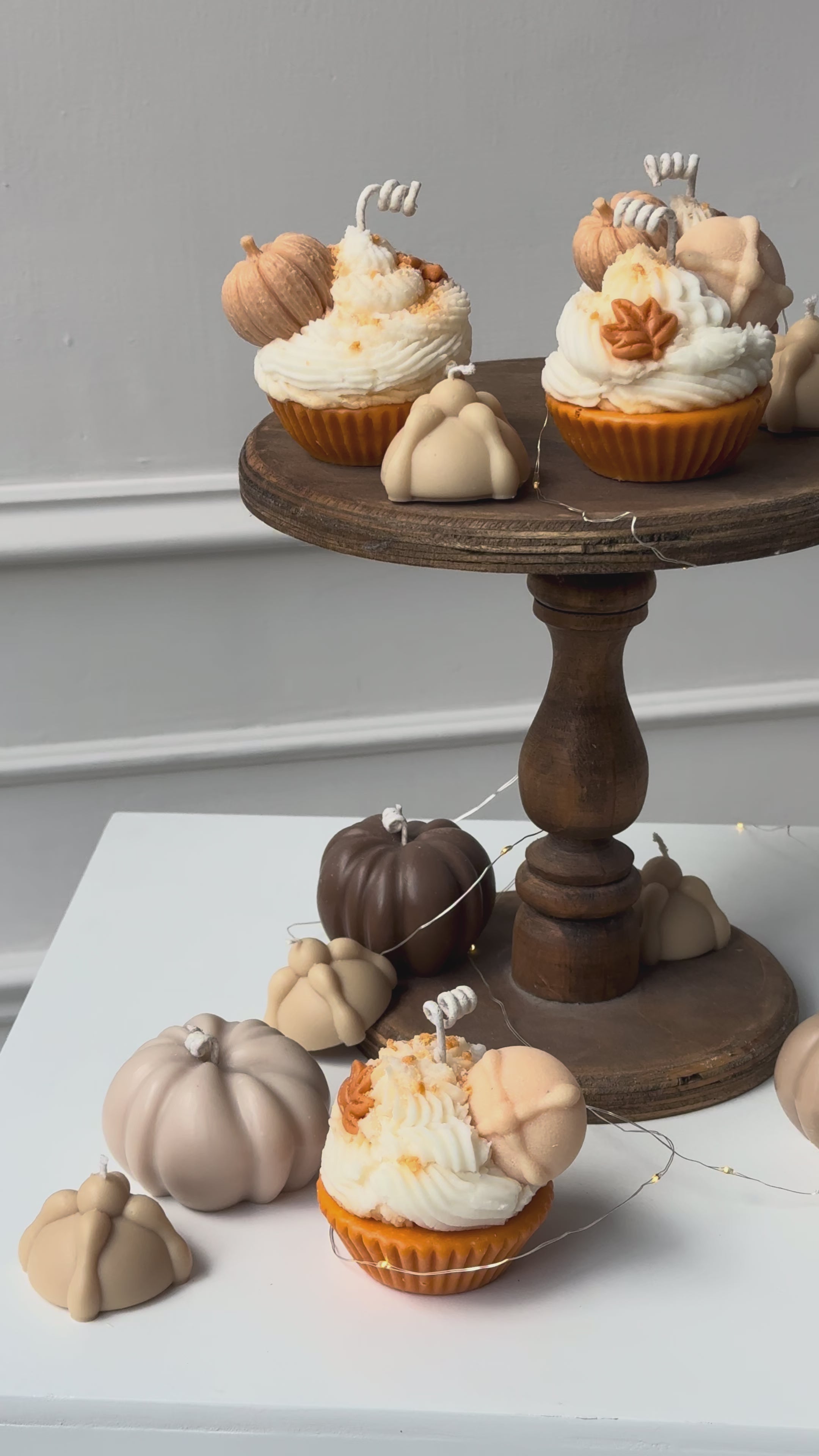 Este set incluye cuatro velas de cera de soja de 7x5cm en tonos terracota y nude con forma de calabaza. Perfectas para crear una atmósfera otoñal y cálida con su aroma a pumpkin spice y chocolate, ya sea en conjunto o distribuidas en diferentes rincones.