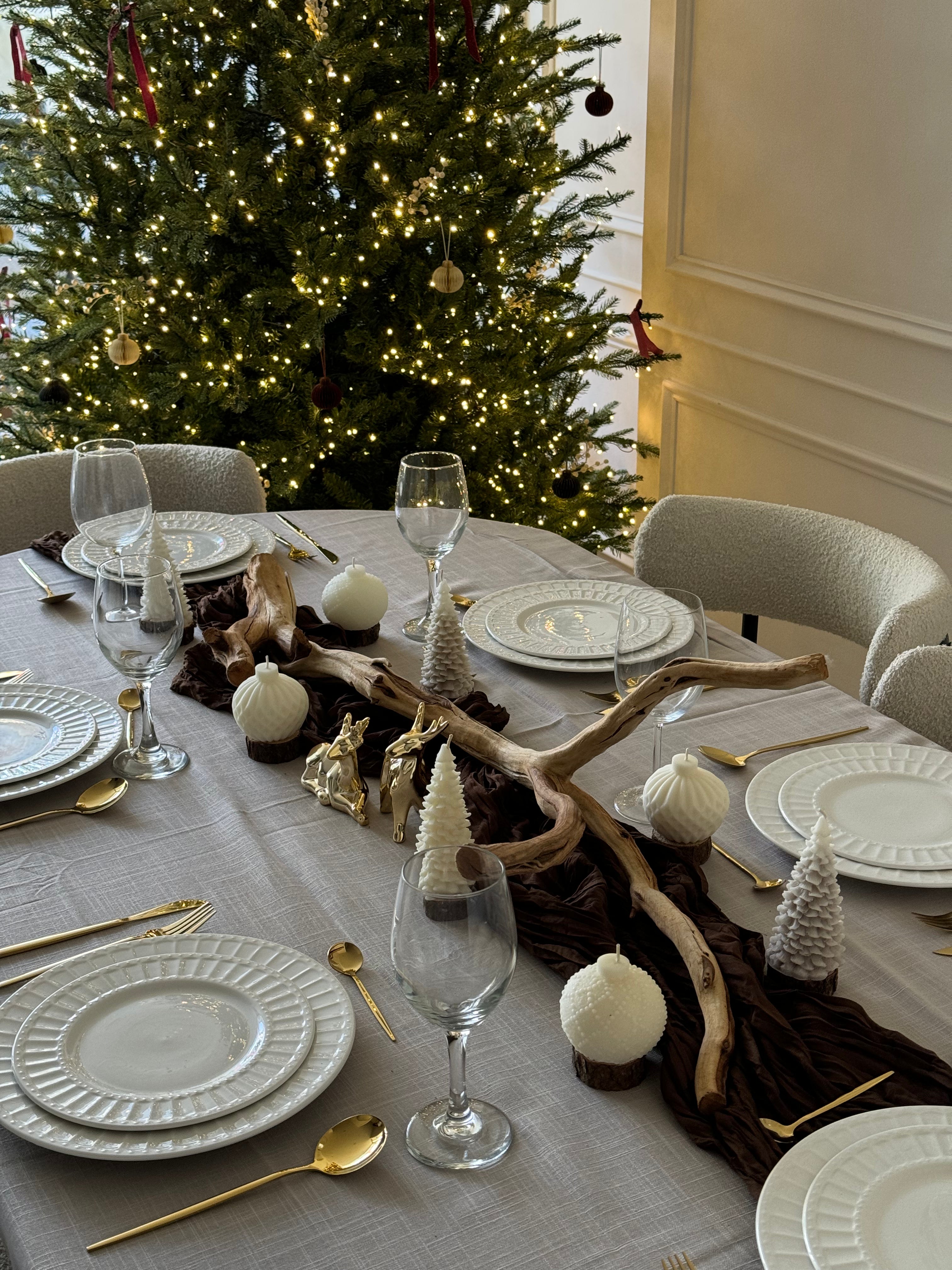 Velas navideñas elaboradas con cera de soja, disponibles en cuatro diseños únicos. Sus suaves tonos y sus formas delicadas capturan la esencia de la Navidad: cálida y llena de encanto.